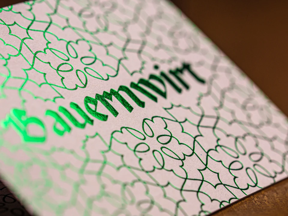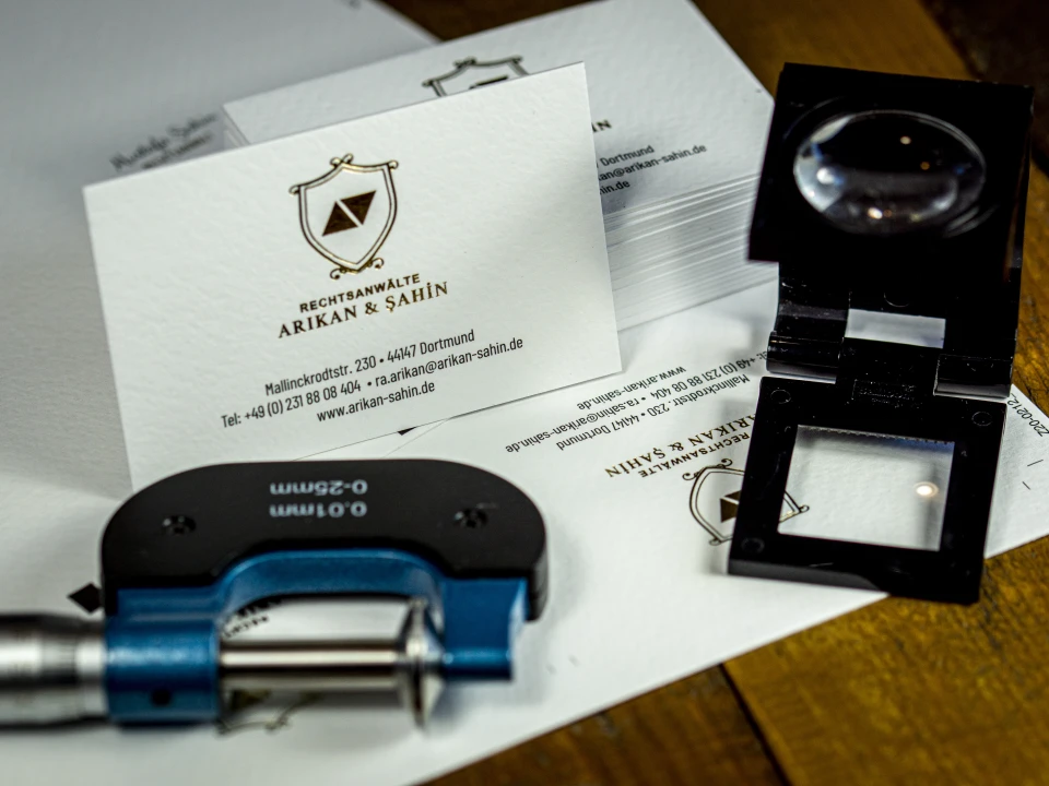 - Heißfolienprägungen in verschiedensten Folienfarben (KURZ und FOILCO)