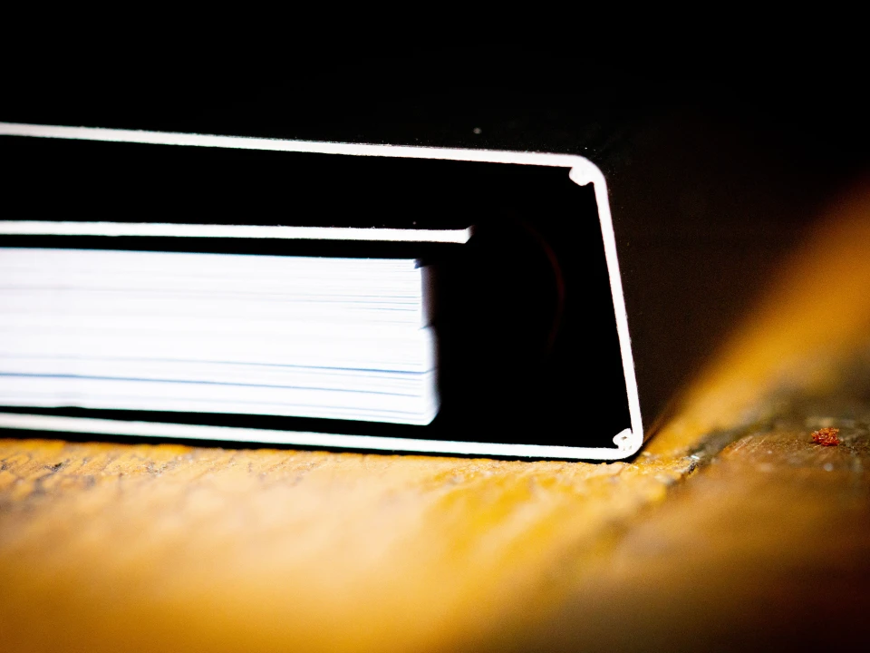 Der äußerst robuste Chromosulfatkarton SymbolCard 2 Side 500g von FEDRIGONI dient als Umschlag und ist zusätzlich mit einer beidseitig kratzfesten Mattfolie versehen. Der integrierte Block, der mit einer roten Spiralbindung an der 6. Umschlagseite befestigt ist, wurde 2/2-farbig auf 100g gedruckt.