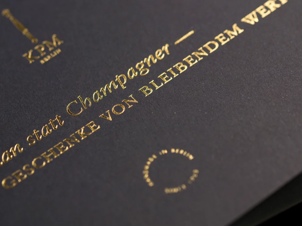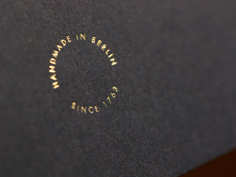 Präsentieren Sie Ihren Kunden Ihre Produkte in einer edlen Broschüre mit Heißfolienprägung. Geprägt auf dem 290g Sirio Color Dark Blue Umschlag, gibt die goldene Heißfolie den perfekten Glanz auf dem hochwertigen Naturpapier. Das bedruckte Maxi Offset in 120g im Inhalt passt haptisch als auch optisch sehr gut zu dem farbigen Naturpapier. Die Broschüre besticht mit der goldenen Rückstichheftung und lädt zum blättern ein.