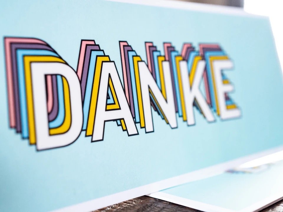 Diese „fette“ Dankeskarte wurde im Digtialdruck auf 865g Multiloftmaterial produziert. Die 865g setzen sich aus 2 Coverschichten Metapaper extra smooth coldwhite und einem 325g dicken Farbkern in coldwhite zusammen - ein richtiges Brett, was gerne einen Platz auf Schreibtischen findet.