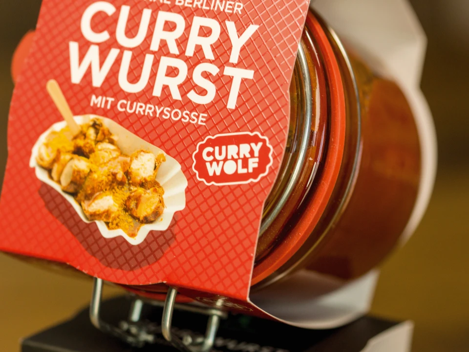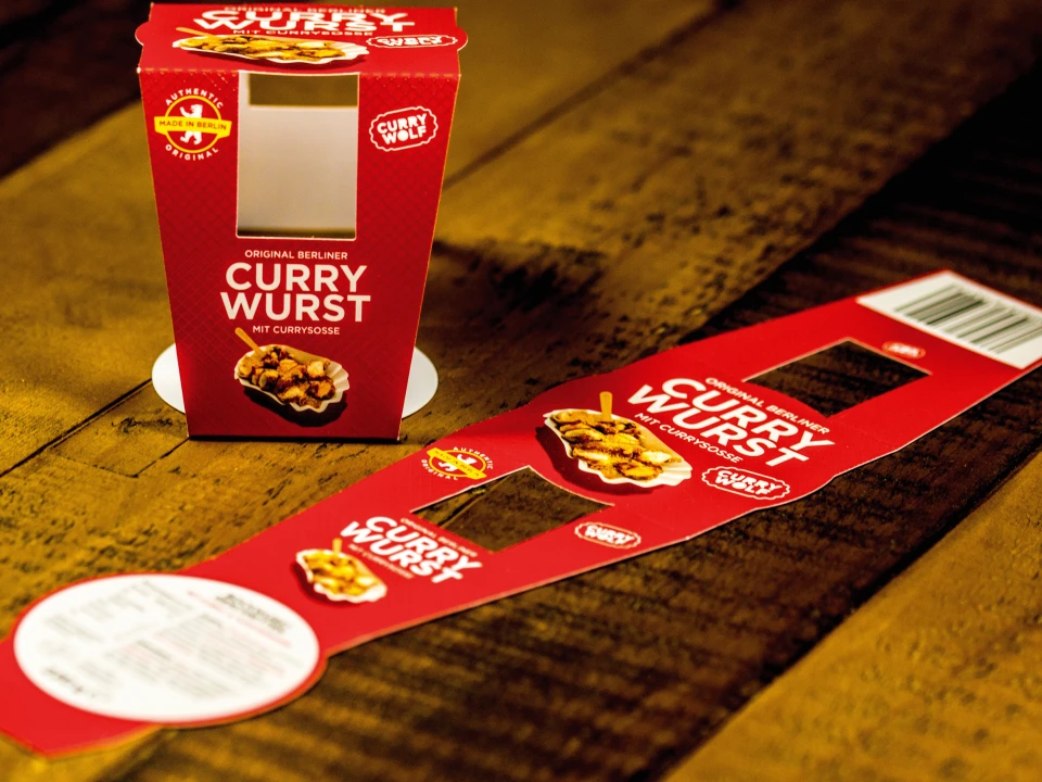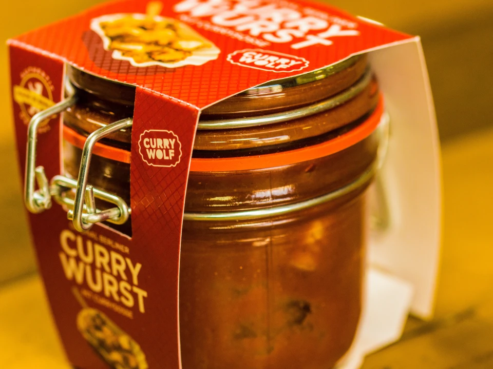 Das Team von Curry Wolf pflegt seit 13 Jahren die Berliner Imbisskultur und wir sind stolz, ein Teil davon zu sein. Für den perfekten Auftritt haben wir Banderolen für Curry Wolf`s Currywurst-Glas und deren AMPELMANN Kooperation produziert. Gedruckt auf dem matten Bilderdruckpapier in 350g, wurde die Banderole mit einer Mattfolie, sowie einer partiellen UV-Lackierung veredelt und anschließend gestanzt. Durch die Banderole bekommt das Glas einen einzigartigen Look und besticht durch sein individuelles Design. Entdecken Sie auch unseren anderen Flyer mit UV-Lack.