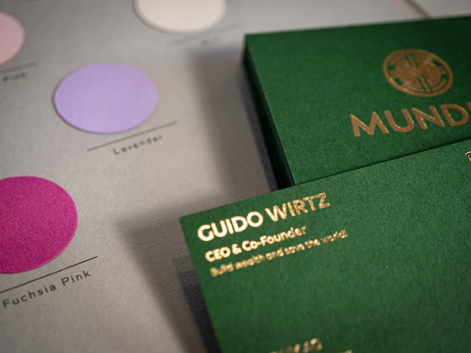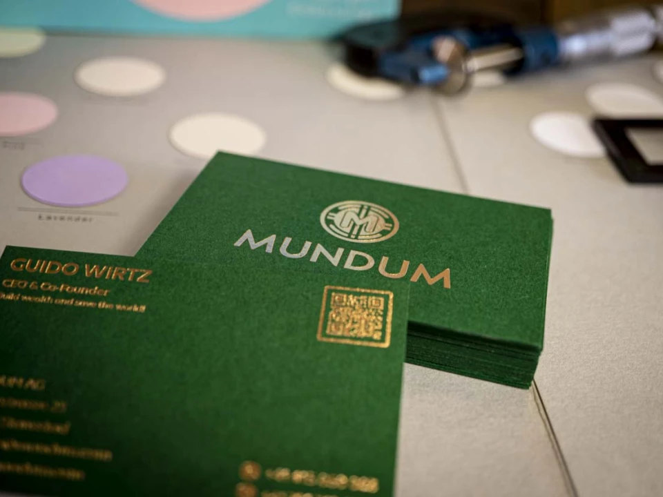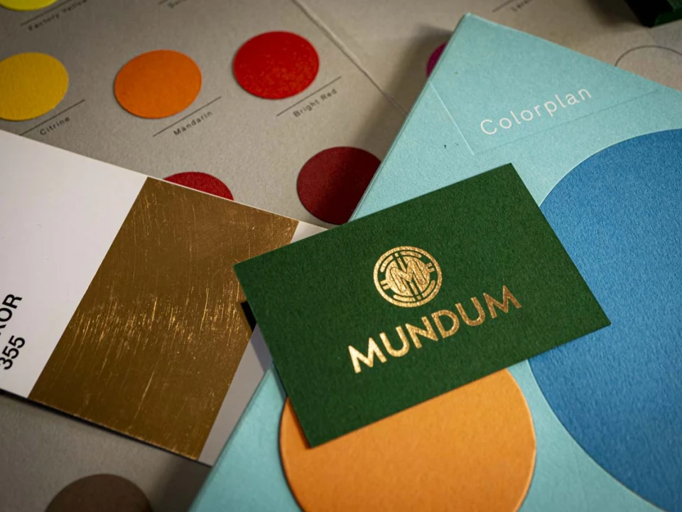 GMUND Colorplan: Die Bandbreite an Farben, Grammaturen und Oberflächen ist beeindruckend und lässt die kreativen Herzen höher schlagen. Mit der Farbe forest kommt bei dieser Visitenkarte mit Heißfolienprägung ein kräftiges Grün zum Einsatz. Für die schöne Haptik sorgt nicht zuletzt die eingesetzte Grammatur von 540g.