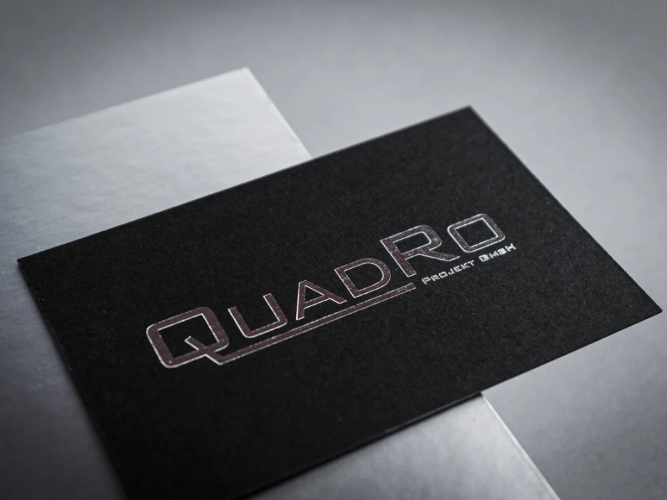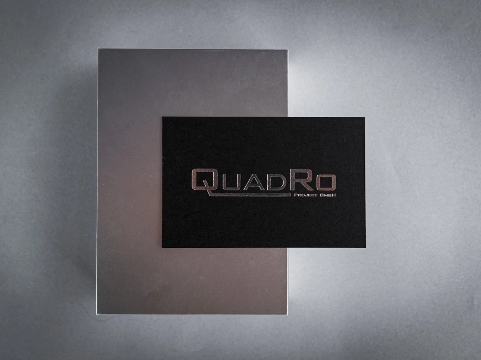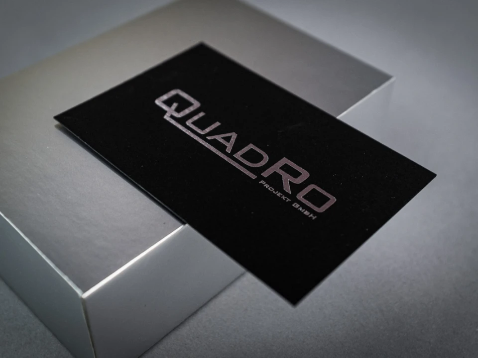 Für dieses Projekt haben wir Visitenkarten produziert, die konsequent auf Material, Kontrast und Veredelung setzen. Grundlage war das exklusive Sirio Ultra Black 370 g von Fedrigoni – ein durchgefärbtes Feinstpapier, das durch sein besonders tiefes, sattes Schwarz überzeugt.