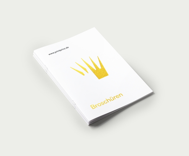 Die Heißfolienprägung ist eine sehr edle und beliebte Druckveredelung, wenn es um Broschüren mit Drahtheftung geht. Setzen Sie haptische und optische Highlights, indem Sie Ihr Logo, Ornamente oder Schriften prägen.