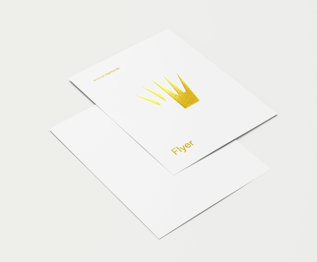 Flyer mit Heißfolienprägung wirken besonders hochwertig durch glänzende, metallische Effekte. Diese Veredelung hebt bestimmte Elemente hervor und verleiht dem Design Eleganz. Ideal, um Aufmerksamkeit zu erzeugen und einen professionellen Eindruck zu hinterlassen.